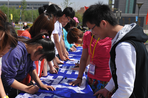 活动现场分为心理咨询区、心理测试区、心理游戏区、签名及宣传区。学生心理健康教育中心老师及学校心理协会成员与现场学生亲切交流,耐心解答。其间,共发放宣传材料约7000份,有40余名学生到现场进行心理咨询,260余名学生做了焦虑、抑郁、情商等方面的心理测试,300余名学生参与了“大风吹,吹大风”、“传递呼啦圈”、“有错你就说”、“生死与共”等心理游戏,有6000余名师生参与签名。