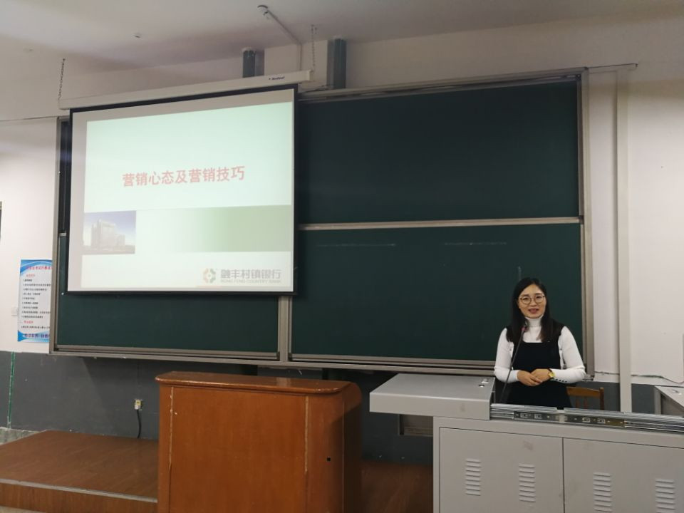 李国萍现任长春市经开区融丰村镇银行支行副行长。在报告会上,李国萍阐述了营销人员必须具备的积极心态、主动心态、自信心态等10大心态和知识素质、身体素质、道德素质、心理素质。她还介绍了网点营销技巧即∶团队协作、联动营销、提升效率、培养习惯、形成氛围。同学们针对营销方面的问题现场提问,李国萍进行一一解答。
